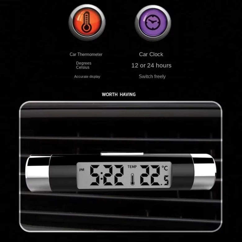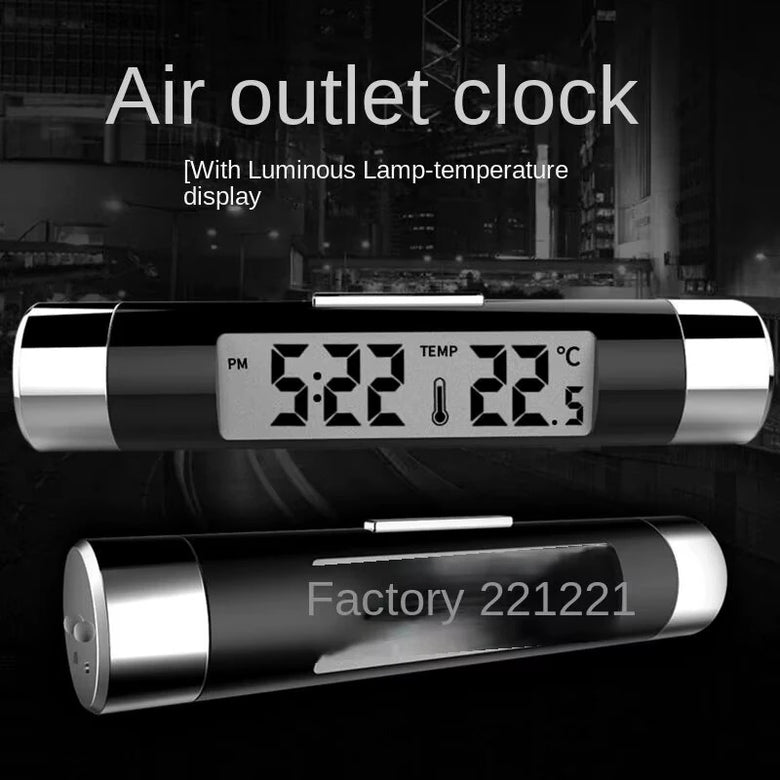 • Car Air Outlet Thermometer Time Display High Precision Electronic Digital Car Clock LED Thermometer with Back Luminous