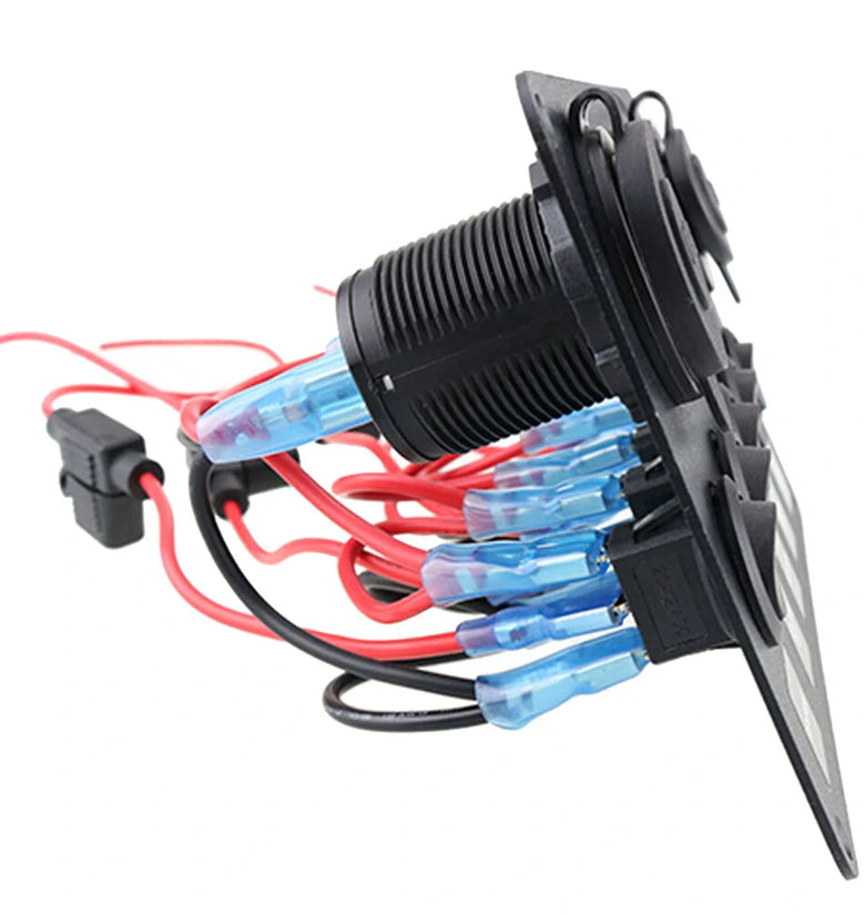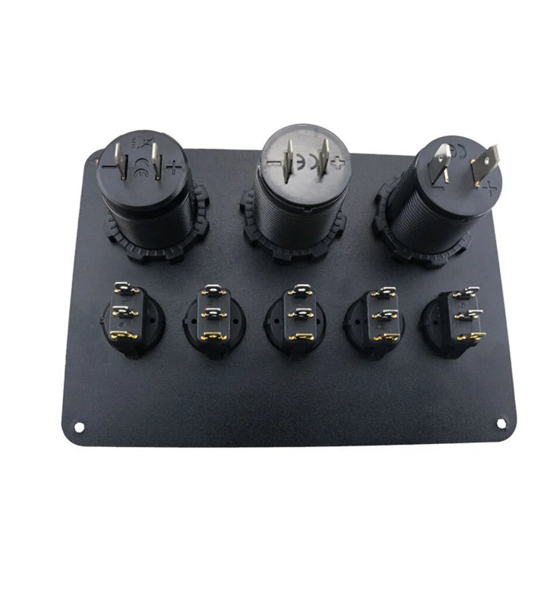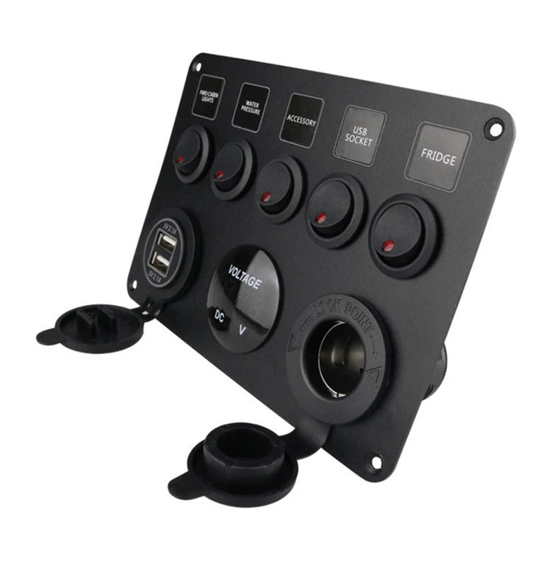 1.Multi-Functions Panel; Dual USB Socket + Voltmeter + 12V Outlet + 5 Toggle Switches