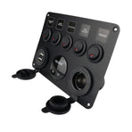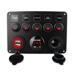 • Car Boat Switch Panel Waterproof Digital Voltmeter Dual USB Port 12 Outlet Combination Marine LED Rocker 5 Gang