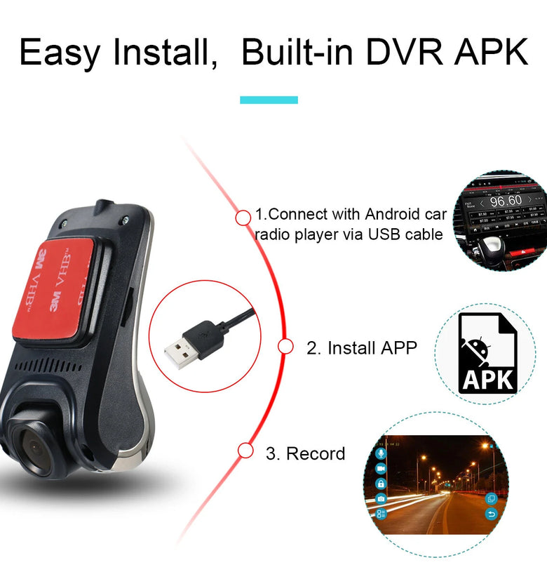 The USB driving recorder with its own car phone APK is specially developed and designed for the Android large-screen car audio-visual system. It can transmit high-definition screen browsing, image playback and other functions through the USB interface. It adopts imported image processing chip and high-quality sensor chip to bring you the ultimate high-definition video experience.