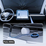 -- Upgraded car windshield sunshade umbrella is designed to protect your car interior without scratching car dashboard. Unlike other car umbrella with long metal shafts that may scratch your car and burn your hands, our innovative car sunshade umbrella combines short shafts, soft drawstring and pull ring to avoid scratching your car again and prevent your hands from getting burned by a hot metal shaft.