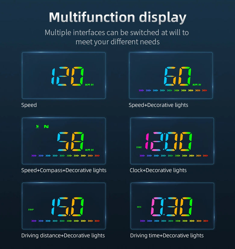 - Smart Display Switching: The smart display adjusts automatically according to driving conditions. It shows speed during regular driving, switches to time display when stopped at a red light, and provides comprehensive data such as driving time and distance, all configurable to suit your needs.