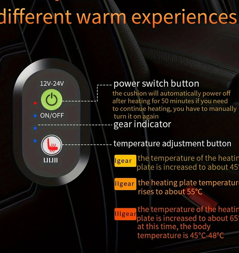 The design of the heating pad maximizes the heating surface area, ensuring the heat can be sufficient. Whether you are commuting or on a road trip, this feature enhances your overall driving comfort.