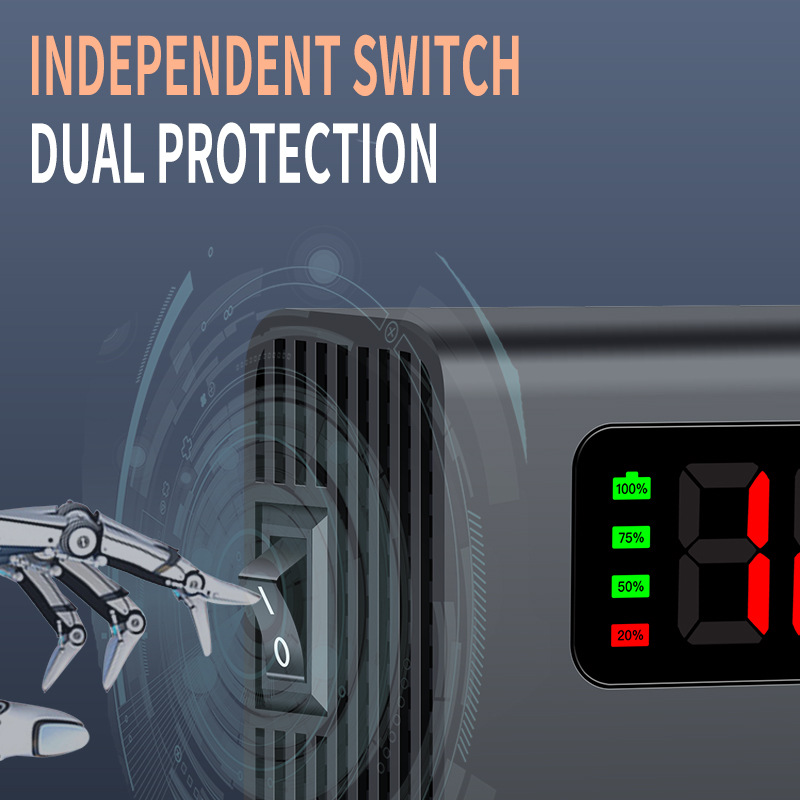 Features an independent switch that offers additional safety by allowing users to manually control the power supply, preventing accidental overloads.