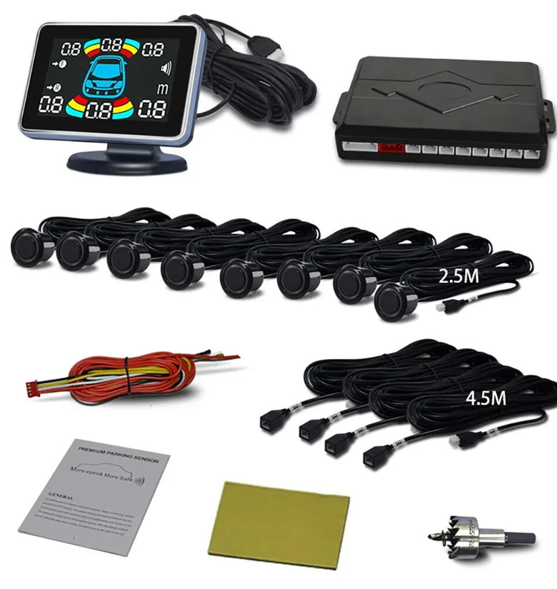 - 6-digit Distance Display: Provides precise measurement of obstacles through a 6-digit display, providing more detailed information compared to traditional displays with only one digit. This feature significantly improves driver awareness and safety when parking or maneuvering the vehicle.