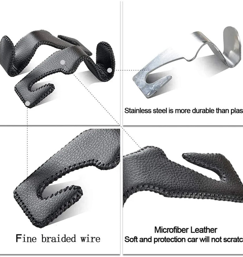 -  Multiple Color Choices: Available in four stylish colors, you can choose the option that best matches your car's interior decor. Whether you prefer classic black, elegant brown, vibrant red, or black with red stitching, these hooks add a touch of sophistication to your vehicle.