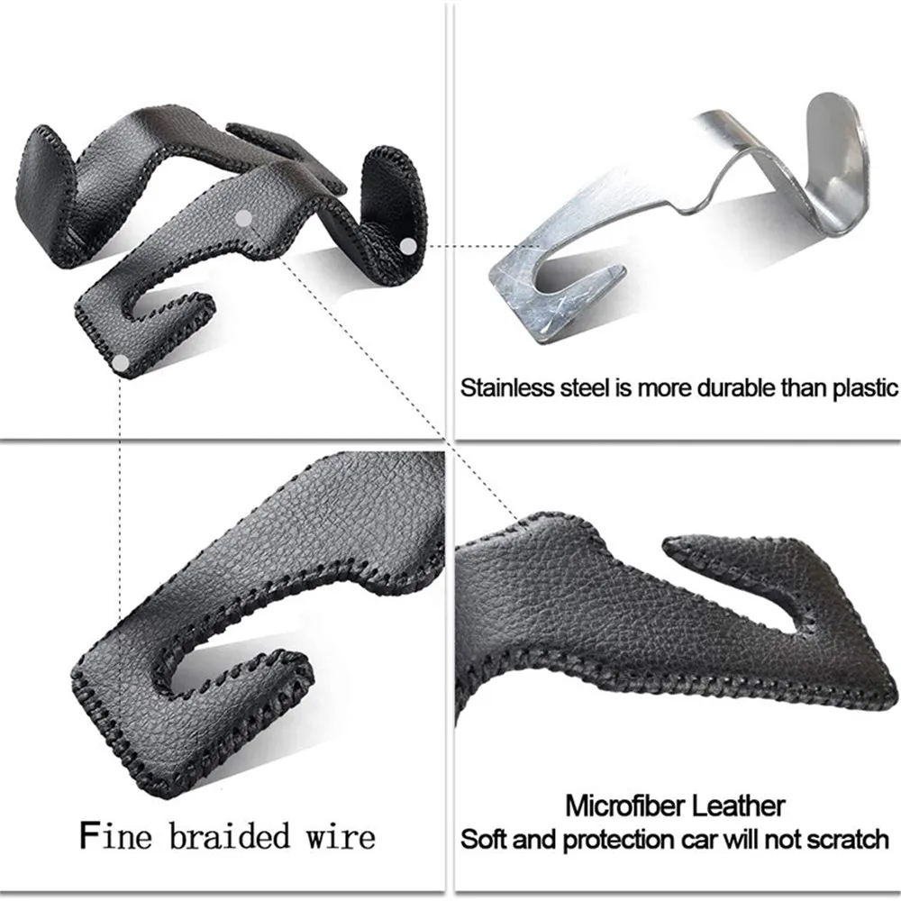 - Premium Quality Construction: Crafted from high-grade leather and stainless steel, this car seat hook offers a refined appearance and superior load-bearing capability. The combination of materials ensures that the hook can securely hold your belongings without deformation or wear.