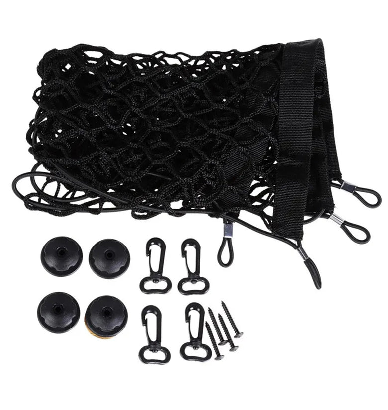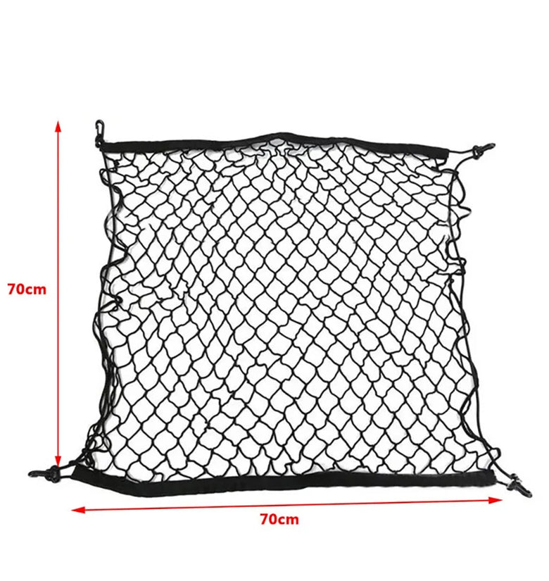 - Easy Installation with Four Hooks: Equipped with four hooks, this trunk mesh is easy to install. Your vehicle’s body needs to have four loops for connection. Simply attach the hooks to these loops, and your cargo net is ready to keep your items organized. This straightforward setup allows for quick and hassle-free installation.