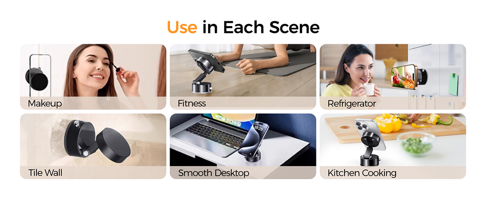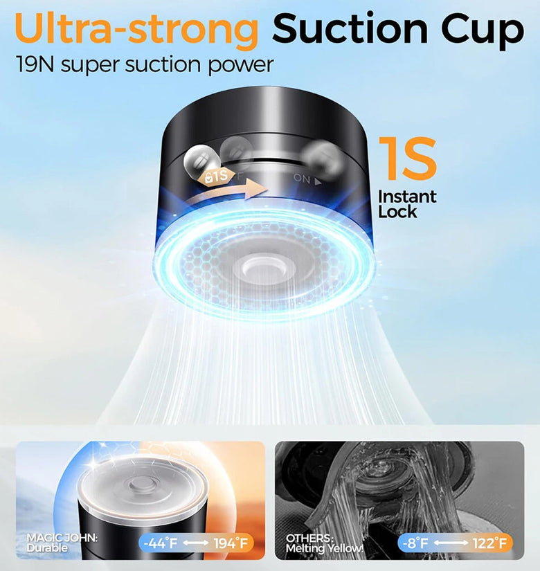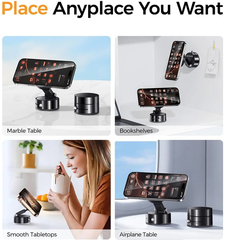 - Instant Suction Base: Equipped with a high-elasticity vacuum suction base that offers instant adhesion to any smooth surface. Designed to remain secure whether clean or dirty, ensuring your phone stays firmly in place without slipping or shaking.