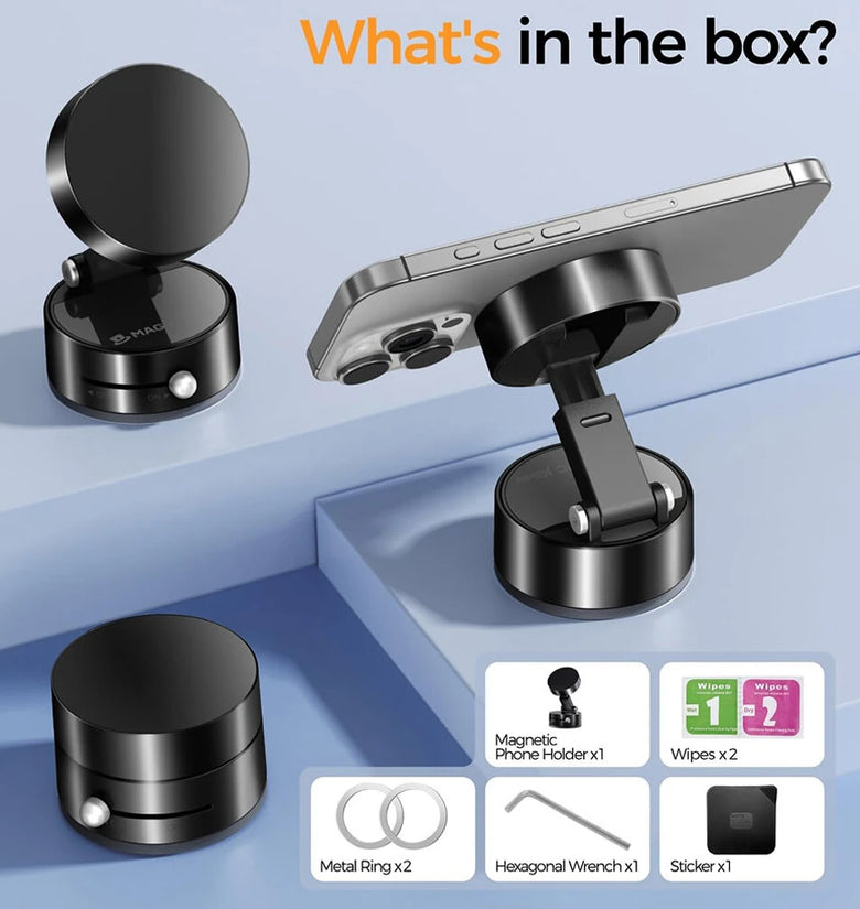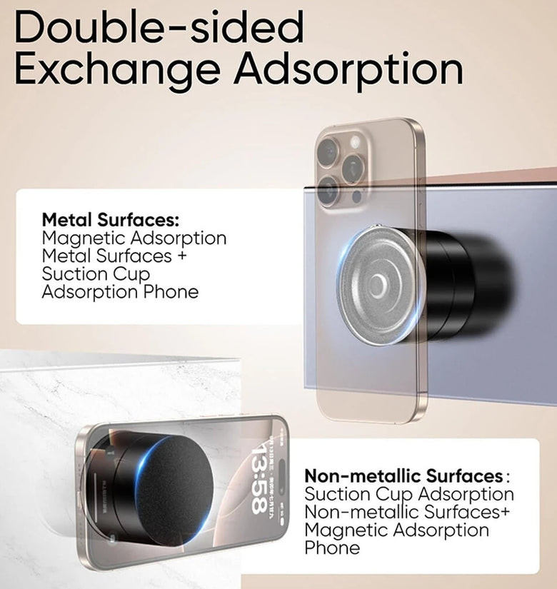 - Dual-Sided Versatility: The magnetic and vacuum-suction surfaces provide the flexibility to adhere to various surfaces like car dashboards, screens, mirrors, marble, tiles, glass, and metal. Perfect for both vehicle use and household applications.