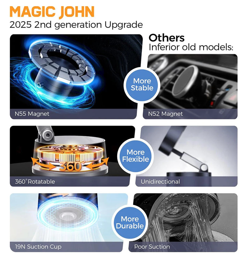- Universal Phone Compatibility: Works seamlessly with all types of phones, including lPhone magnetic models and Android devices using the included magnetic ring. Effortless 1-second phone attachment ensures smooth and worry-free use in any vehicle or environment.