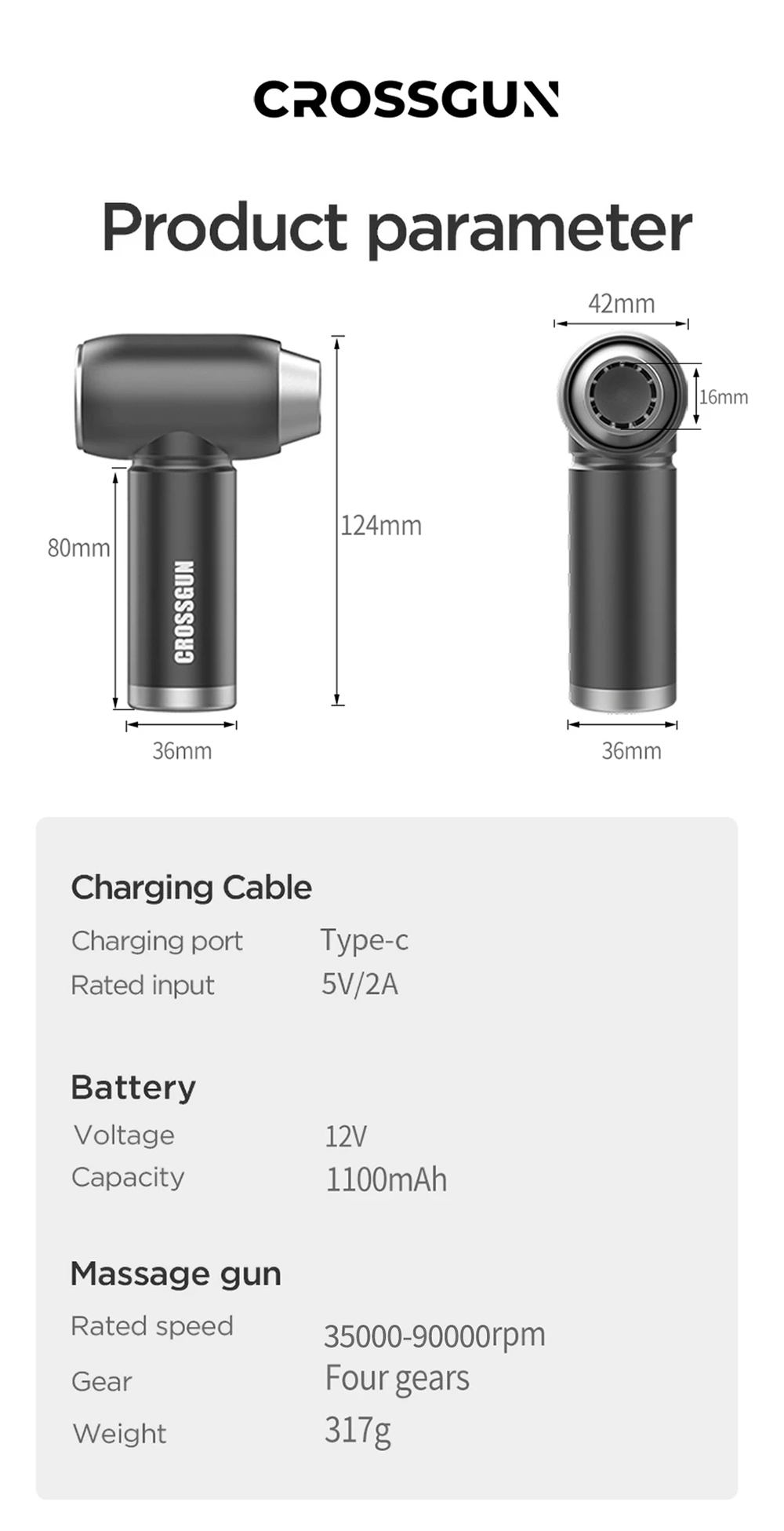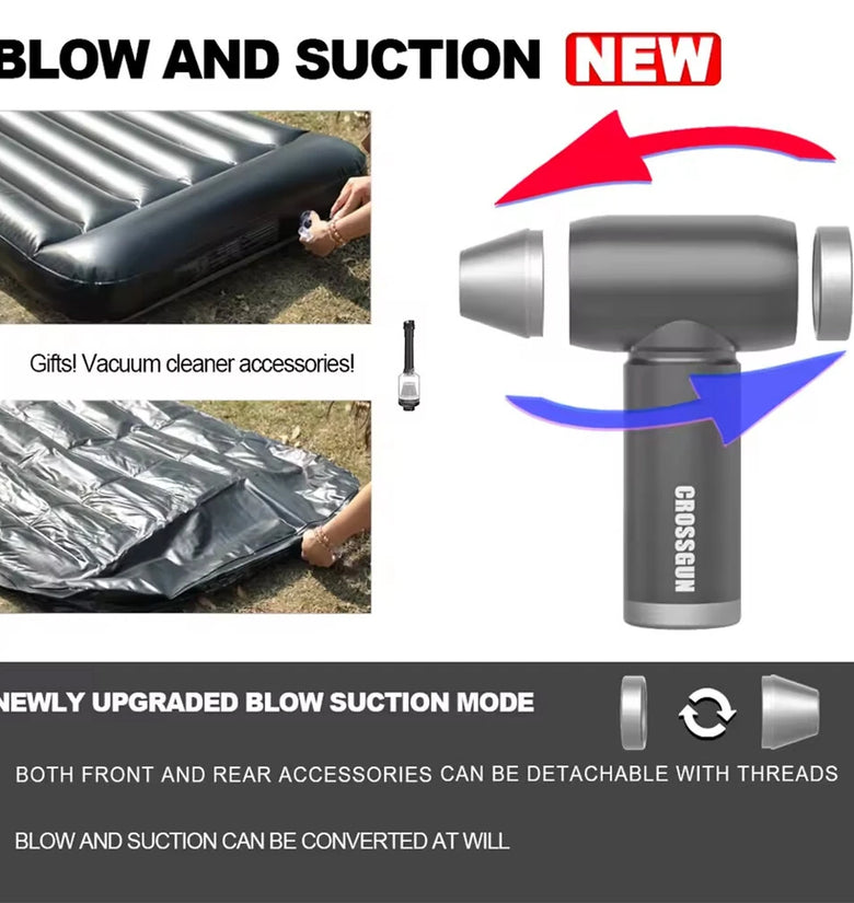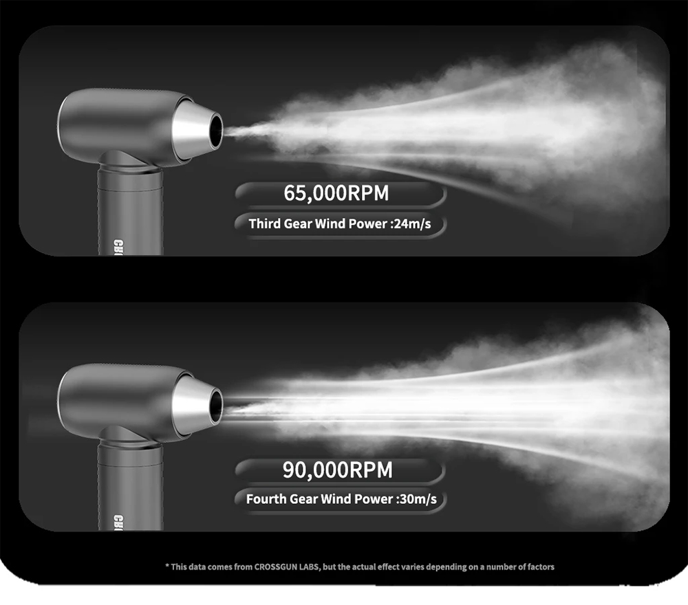 - Extended Battery Life: Equipped with an 1100mAh high-density rechargeable lithium battery, the Crossgun air blower supports up to 2 hours of continuous use (in the first gear setting). This feature ensures you can tackle prolonged tasks without the need for frequent recharging.