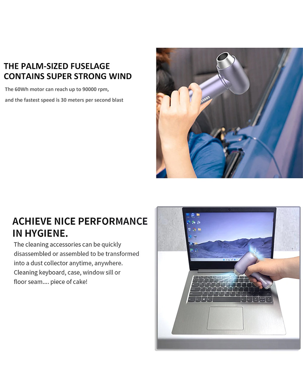 - Universal Application: The Crossgun mini jet turbo fan is incredibly versatile, perfect for cleaning computers, keyboards, cars, cameras, and coffee machines. It excels in handling tight spaces, making it an essential tool for a wide range of tasks.