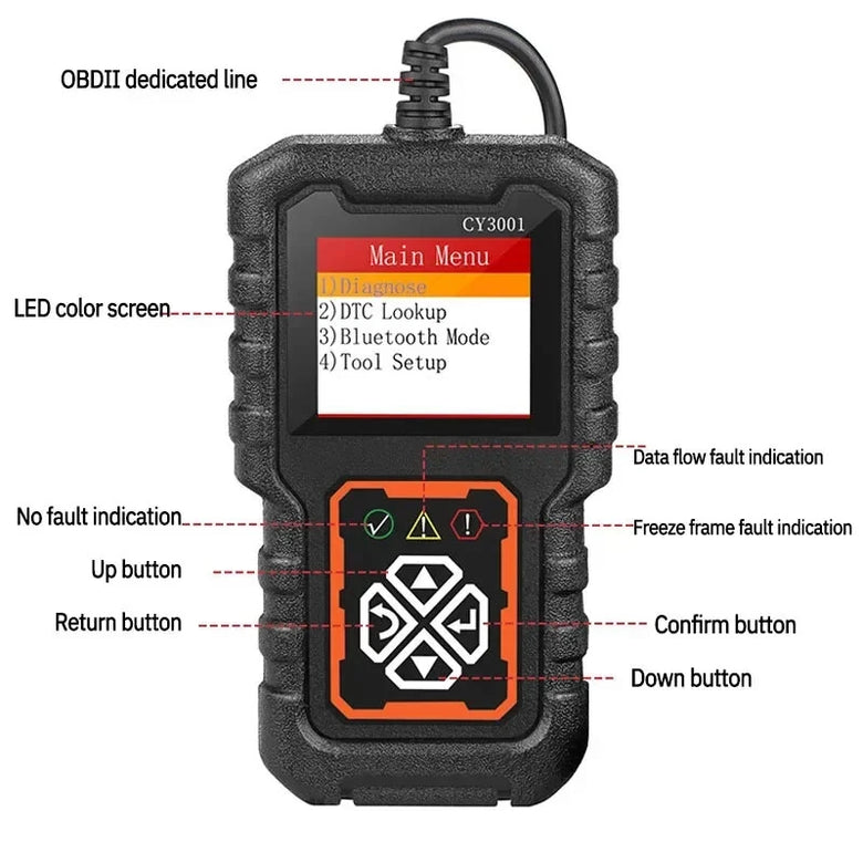 Designed with user-friendly features, the CY3001 emphasizes simple and intuitive operation. Its straightforward interface allows even beginners to easily manage and execute diagnostics, making it accessible to all users.