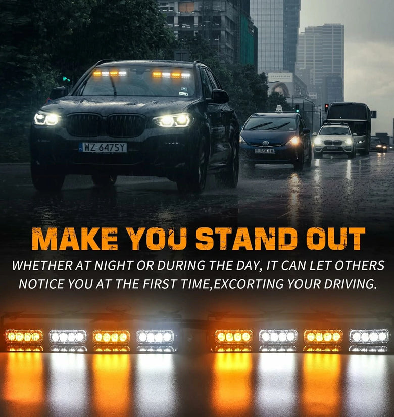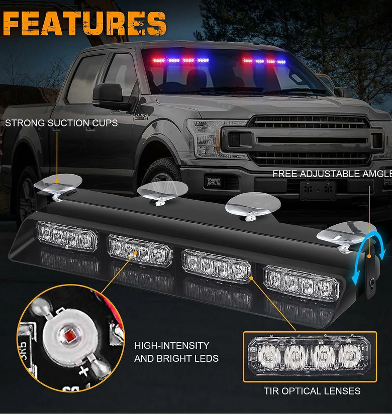 --This 2-in-1 windshield flash light strip comes with 32 high-brightness LED lights. Even in the daytime, the headlights are bright enough for the driver to notice. Very bright and effective for any warning and emergency situations.