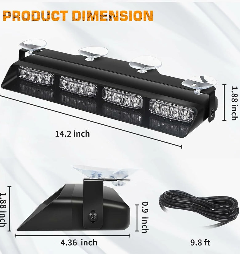 --2 x 14 inches emergency dashboard lights, widely used for hazard warning, law enforcement, first responders, emergency vehicles and tow trucks, construction vehicles, police, EMS, security, snow plows, postal workers wait.