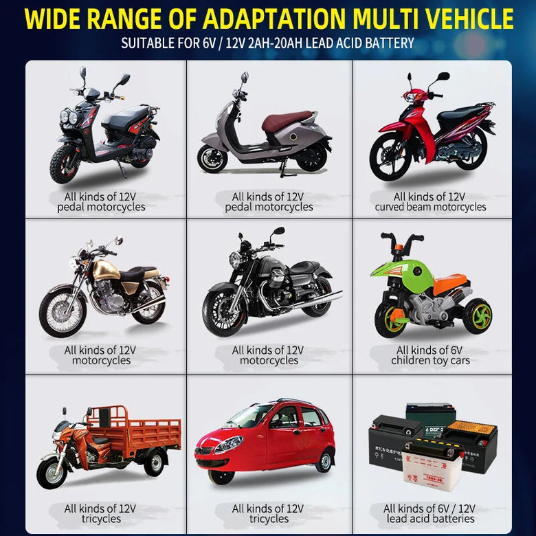 • Types of batteries: Most types of lead acid batteries including Calcium, GEL and AGM, Wet,EFB, etc..
