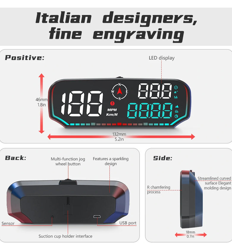 4. USB powered: The car HUD can be powered via a USB connection, making it compatible with a variety of devices such as car chargers, power banks, or any USB power source. This feature ensures continuous use without the need to replace batteries.
