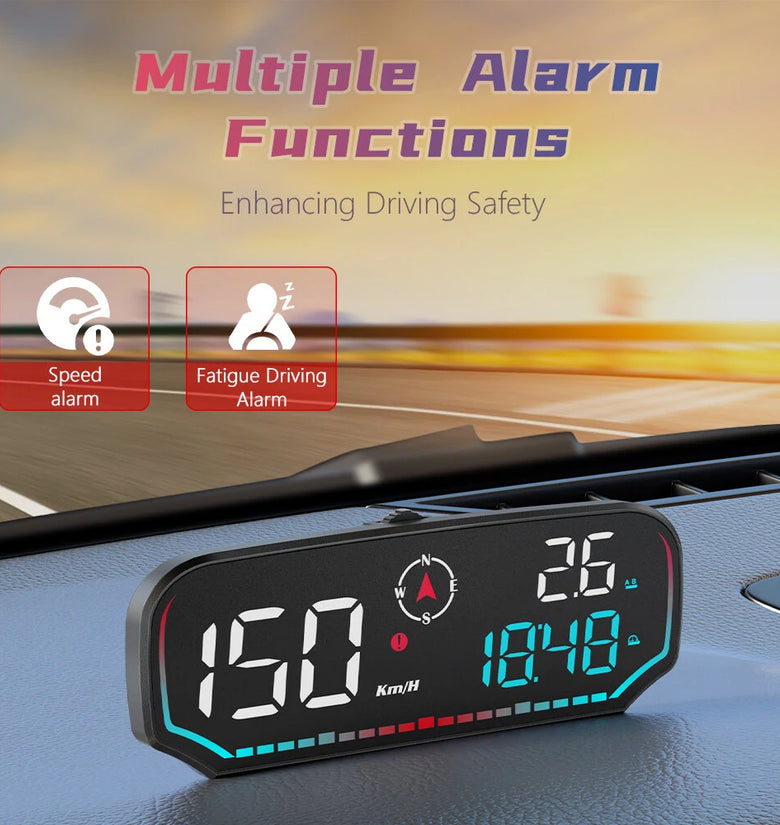 3. Overspeed alarm and fatigue driving alarm: The car HUD has an advanced speed detection system that will alert the driver when a certain speed limit is exceeded. In addition, it has a fatigue driving alarm function that helps prevent accidents caused by drowsiness by signaling the driver to take a break.
