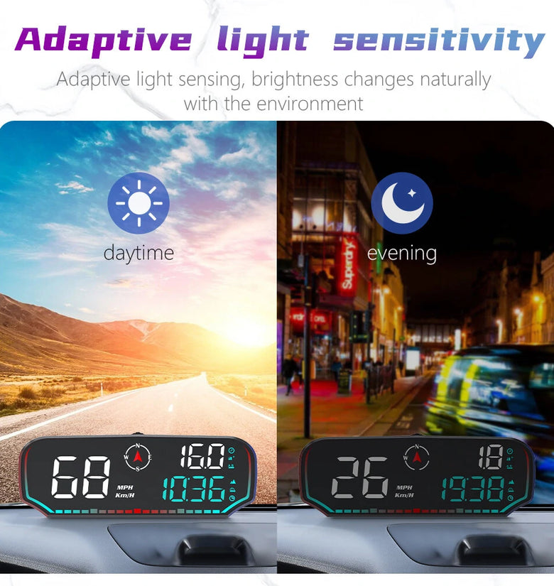 2. Automatic light sensing and brightness adjustment: The vehicle HUD has built-in sensors that can detect surrounding light conditions. It automatically adjusts the brightness of the display to ensure optimal visibility during day and night driving.