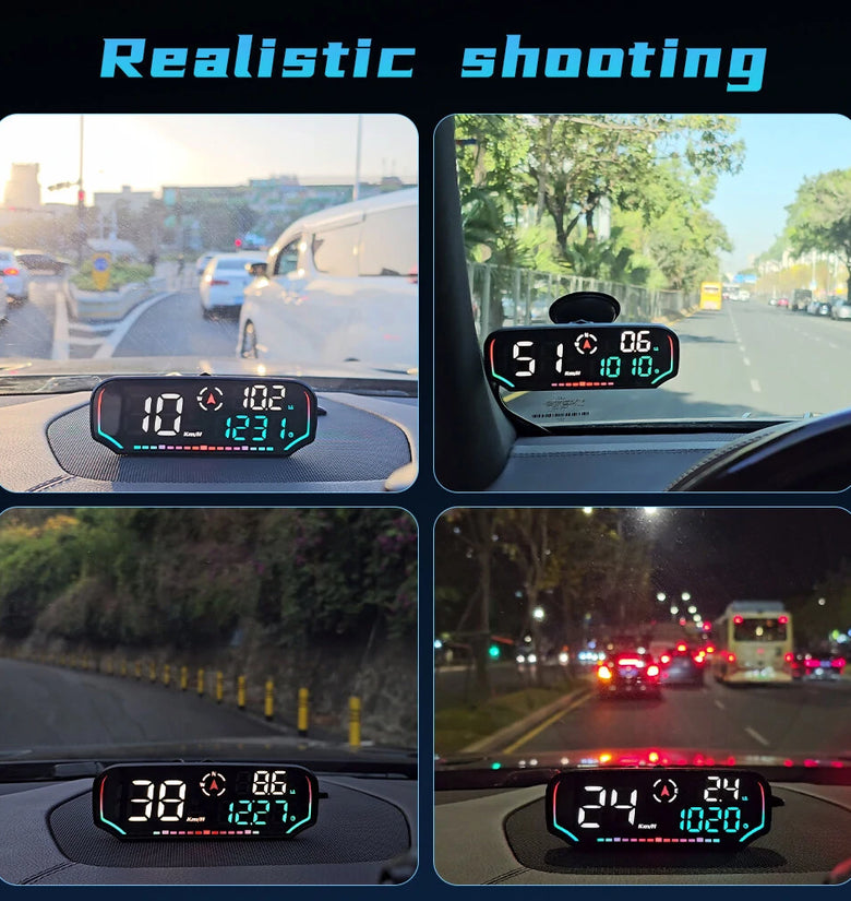 5. Display of vehicle speed, driving direction, driving time, etc.: The vehicle-mounted HUD provides real-time information such as current vehicle speed, driving direction, and driving time. It enables drivers to easily monitor key driving-related data without taking their attention away from the road.