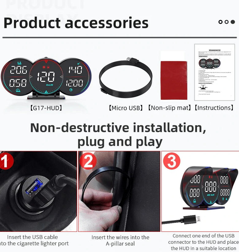 1. Convenient and Versatile: The HUD display allows for easy monitoring of speed and time, suitable for all car models.