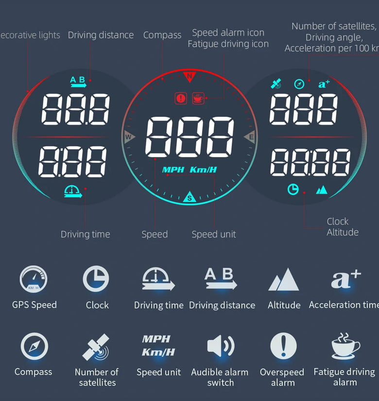 4. Overspeed Alarm: The device is equipped with an overspeed alarm feature, alerting you when you exceed the set speed limit.