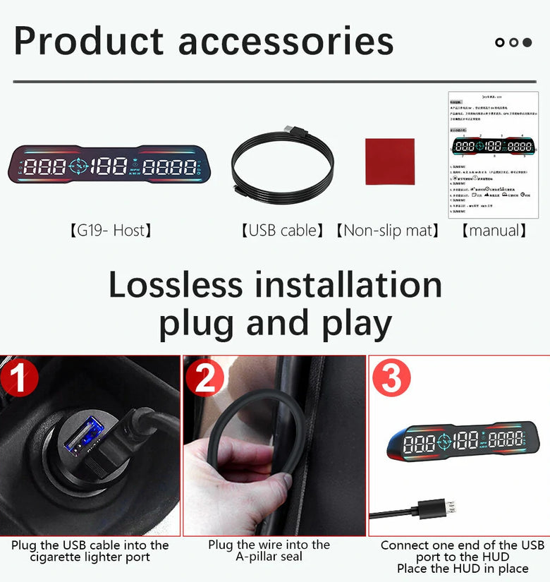 • G19 Universal HUD Car Display GPS Speedometer Multi-Function High-Definition Head-Up Display for All Car Model