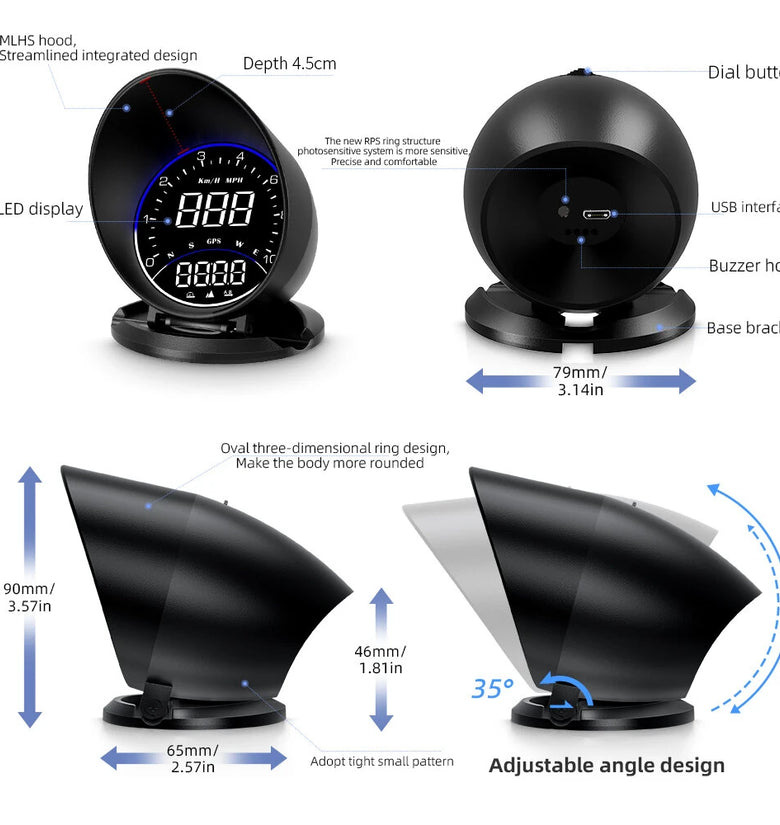 - Adjustable Angle Design: Find the perfect viewing angle with our 35-degree adjustable display. This feature ensures that the HUD is set to your preferred angle, providing effortless visibility while driving.
