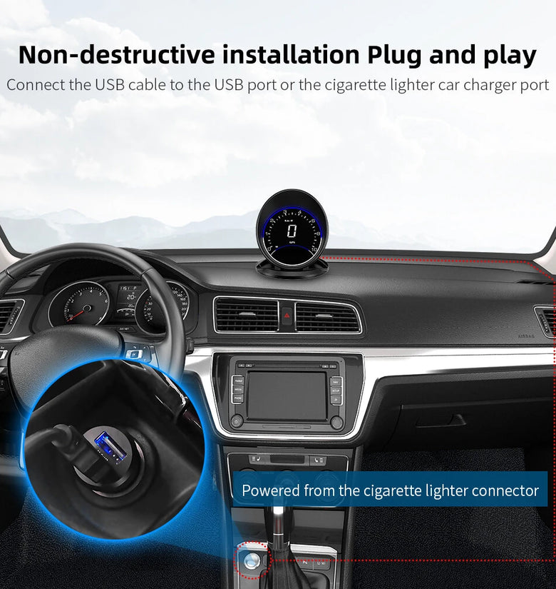 - Power Efficient Operation: The HUD operates via USB power, automatically cutting off power consumption when the car is turned off. This maintains vehicle battery life without worrying about electricity theft.