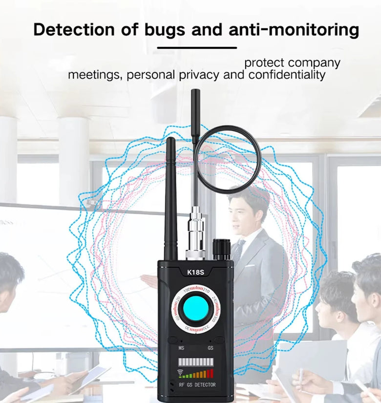 Frequency Range: Detects RF frequencies from 1 MHz to 6.5 GHz and supports detection for 2G, 3G, 4G signals, Wi-Fi, Bluetooth, and other wireless transmissions.