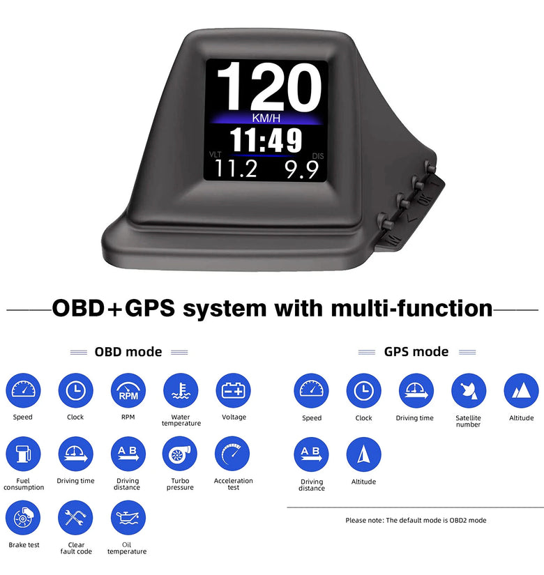 • Head-Up Display OBD2+GPS On-board Computer HUD Car tachometer Turbo Oil Pressure Water Temp GPS Speedometer For Gasoline Car