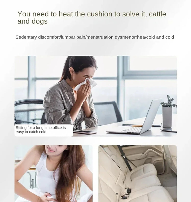- Intelligent Temperature Control: A long press starts the cushion, while a short press changes the temperature settings. This intuitive control allows you to easily adjust according to your comfort, providing a personalized warming experience.