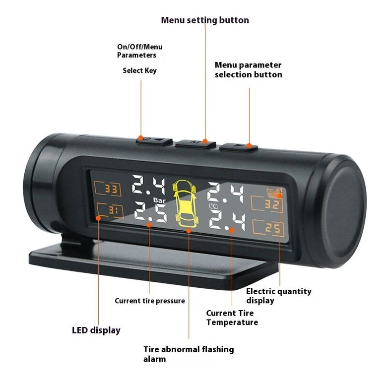 - Real-Time Monitoring: The system simultaneously monitors the pressure and temperature of all four tires, displaying the data on a single screen. This ensures you have up-to-date information on your tire conditions at all times.
