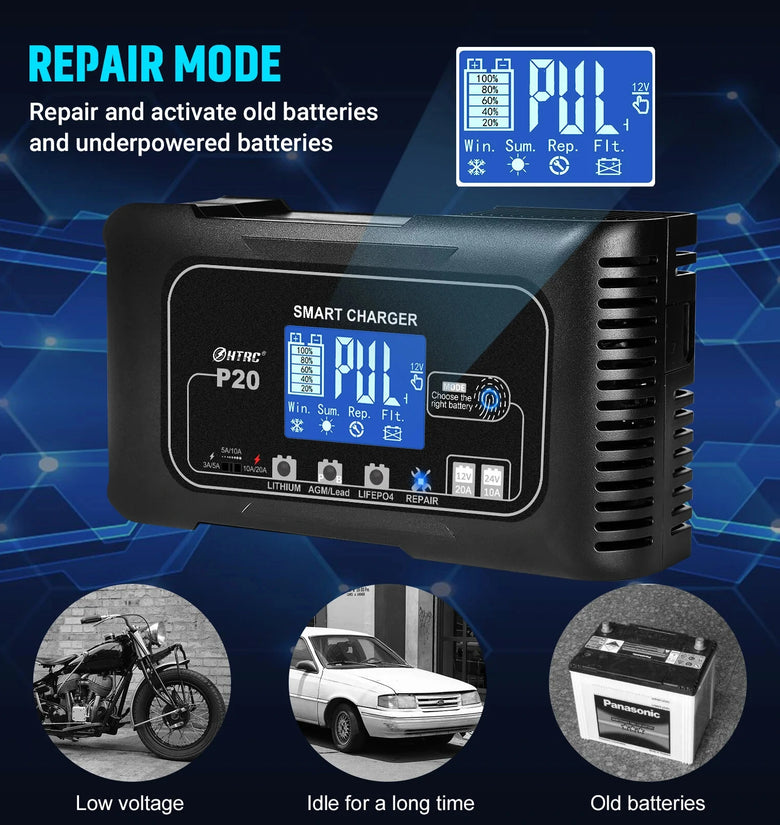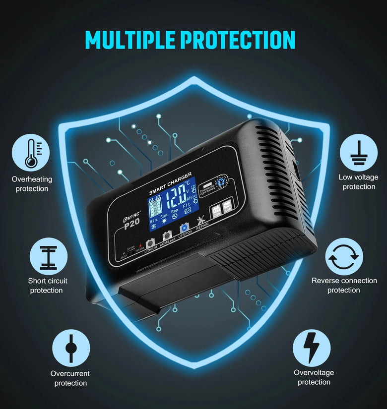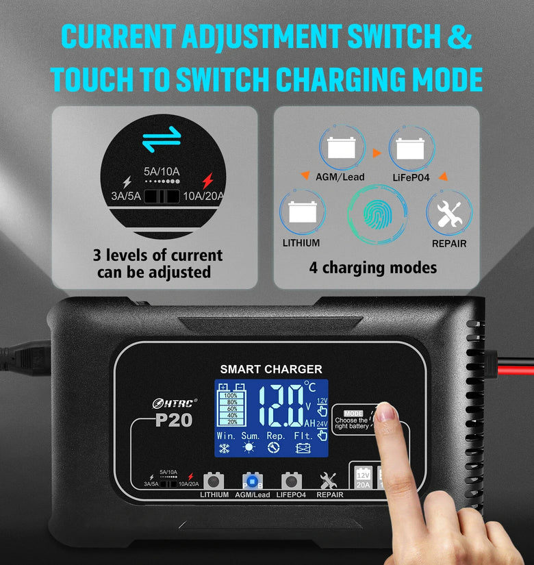 Suit for: Lithium/LiFePO4/Lead-Acid (AGM,GEL,EFB, MF, FLOODED, VRLA, SLA and Wet batteries..)