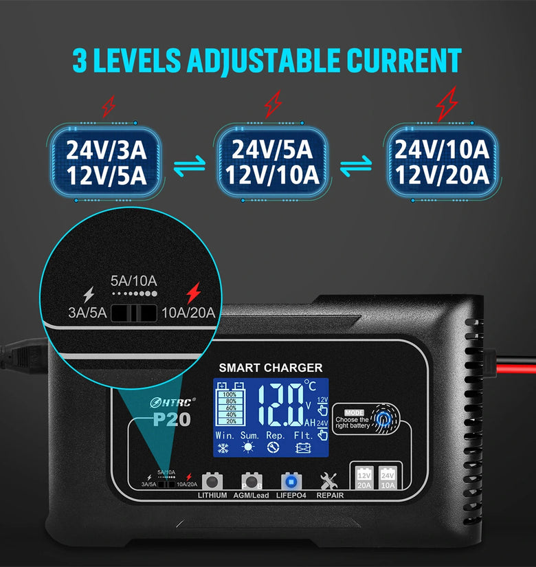 Lithium/LiFePO4/Lead-Acid (AGM,GEL,EFB, MF, FLOODED, VRLA, SLA and Wet batteries..) |