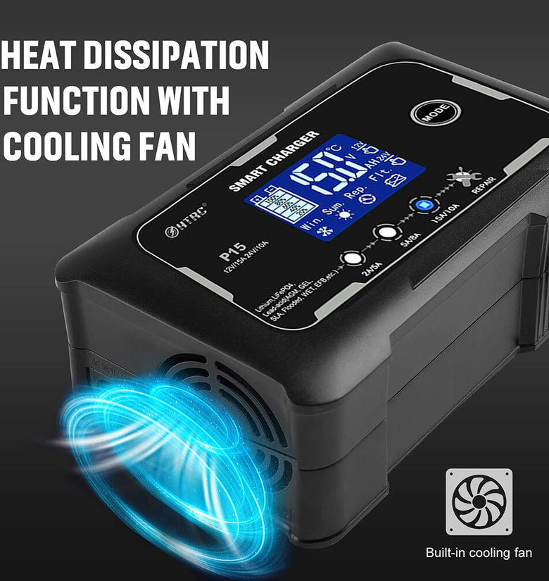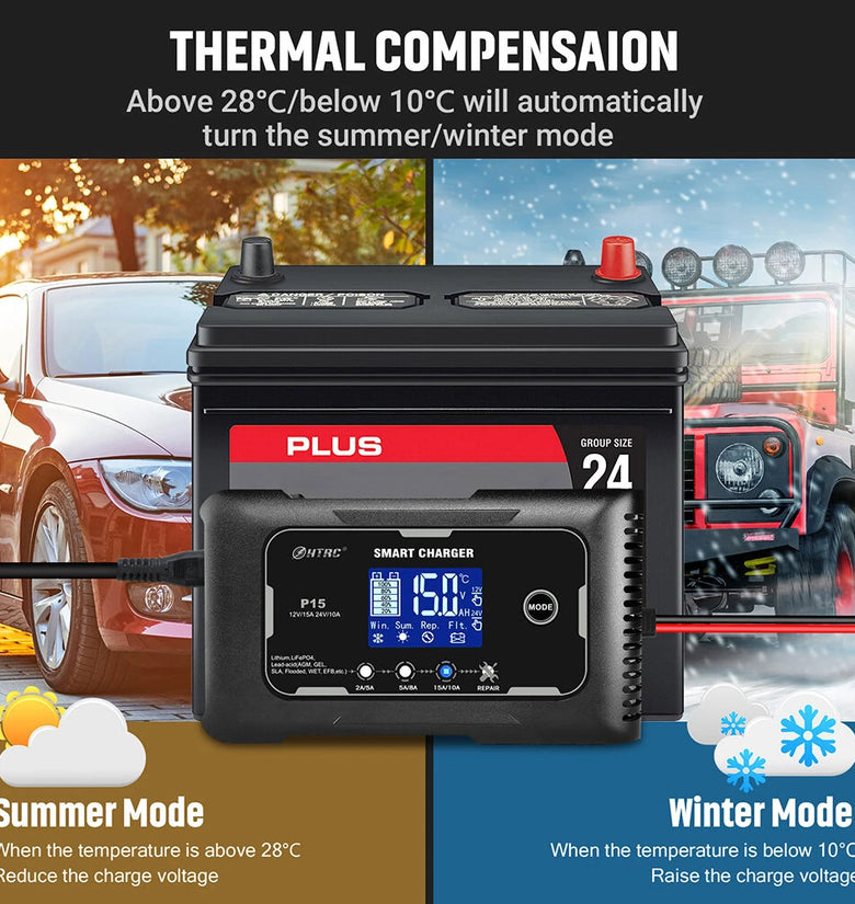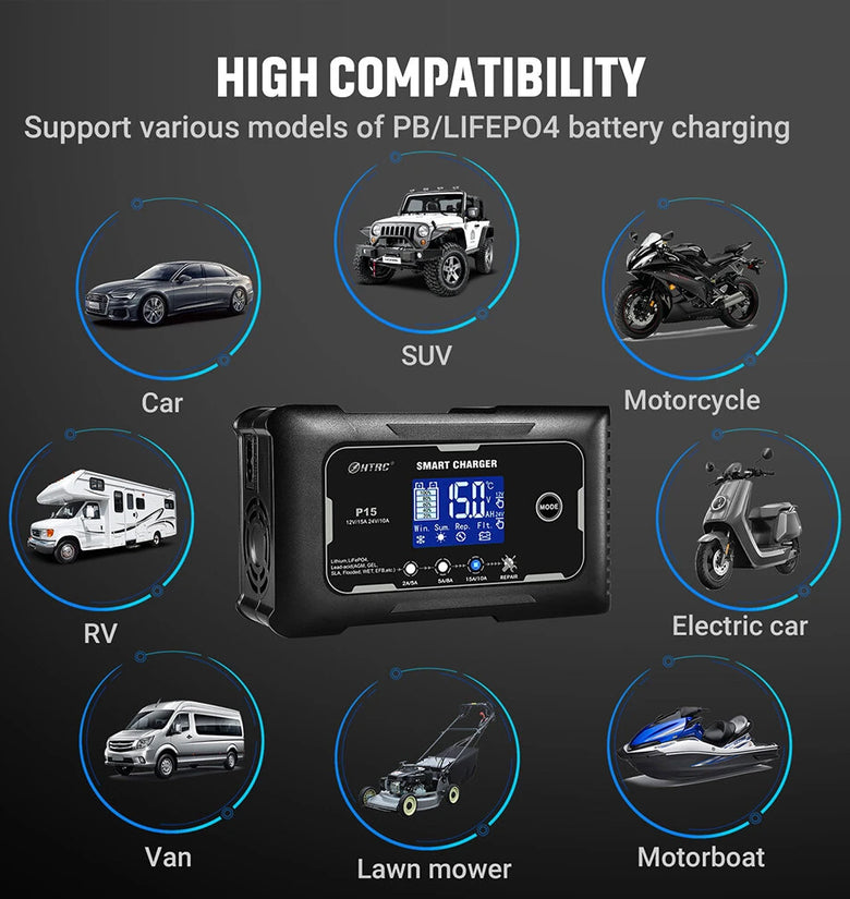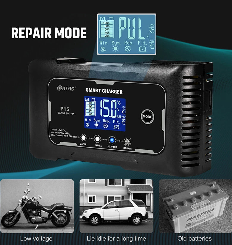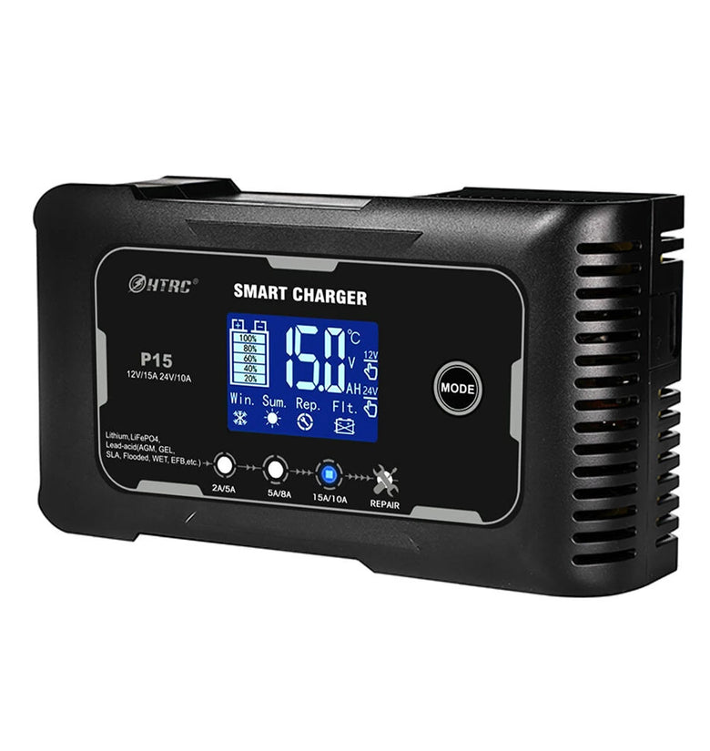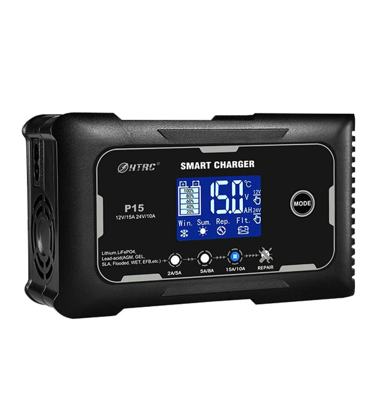 • HTRC P15 12V/15A 24V/10A Car Motorcycle Battery Charger Lead-Acid Battery AGM Intelligent Repair Charger Overcurrent Protection Dual Mode Charging