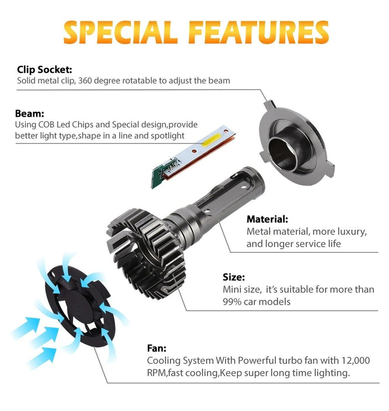 - Cooling System With Powerful turbo fan with 12,000 RPM,fast cooling,Keep super long time lighting