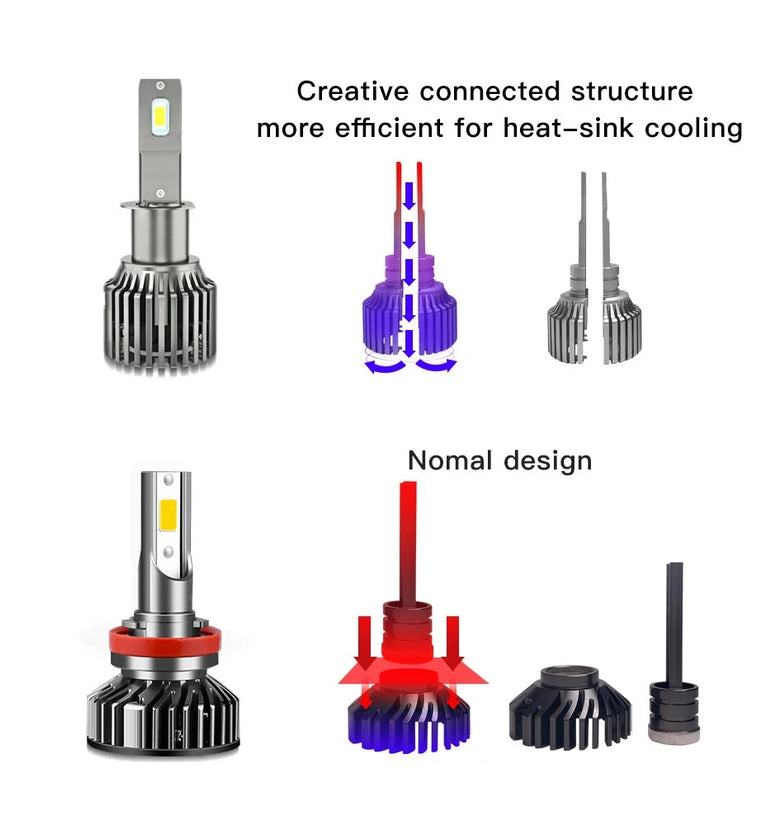 - Efficient Heat Dissipation: Constructed from aviation-grade aluminum 6063 combined with a built-in cooling fan, the headlight effectively dissipates heat, maintaining optimal temperature and performance. This advanced cooling mechanism significantly extends the operating life to 50000 hours.