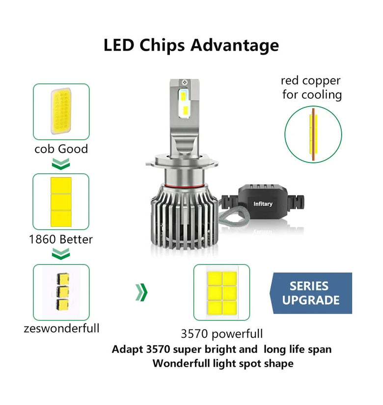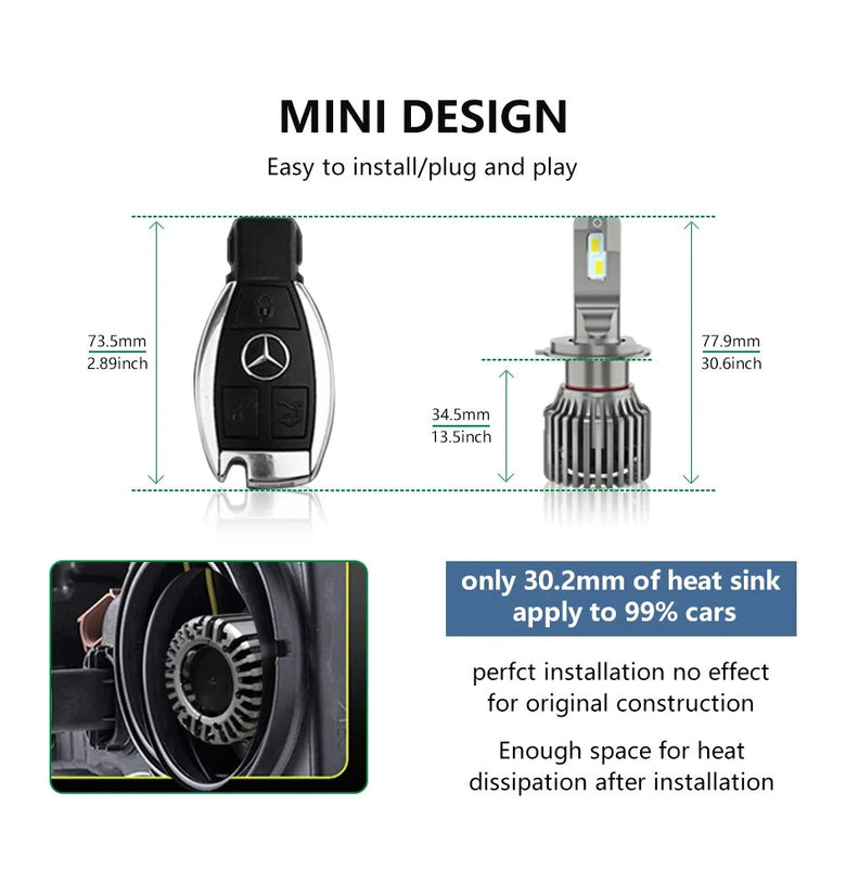 - High Performance Illumination: Boasting 26000 lumens and a color temperature of 6500K, our LED car headlight ensures crystal-clear visibility in all driving conditions. The CSP 3570 chip provides a powerful light source, making nighttime driving safer and more comfortable.