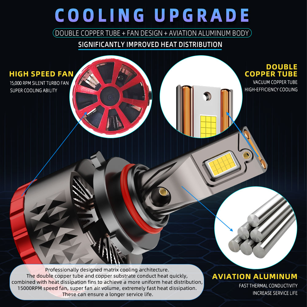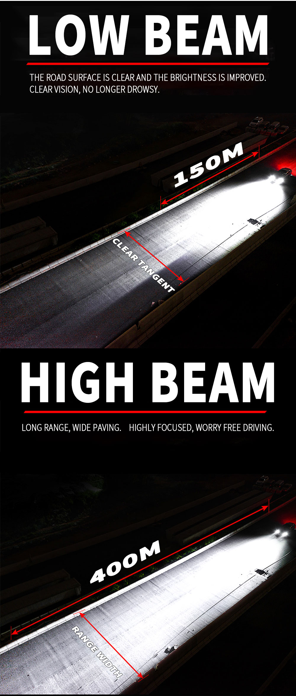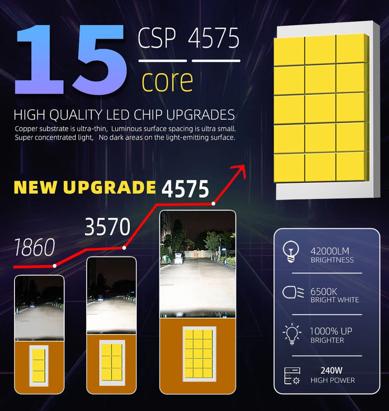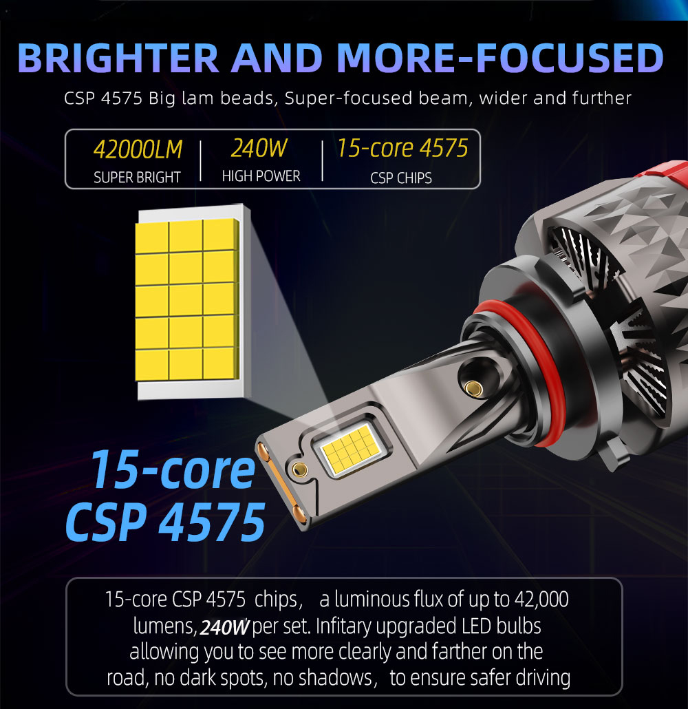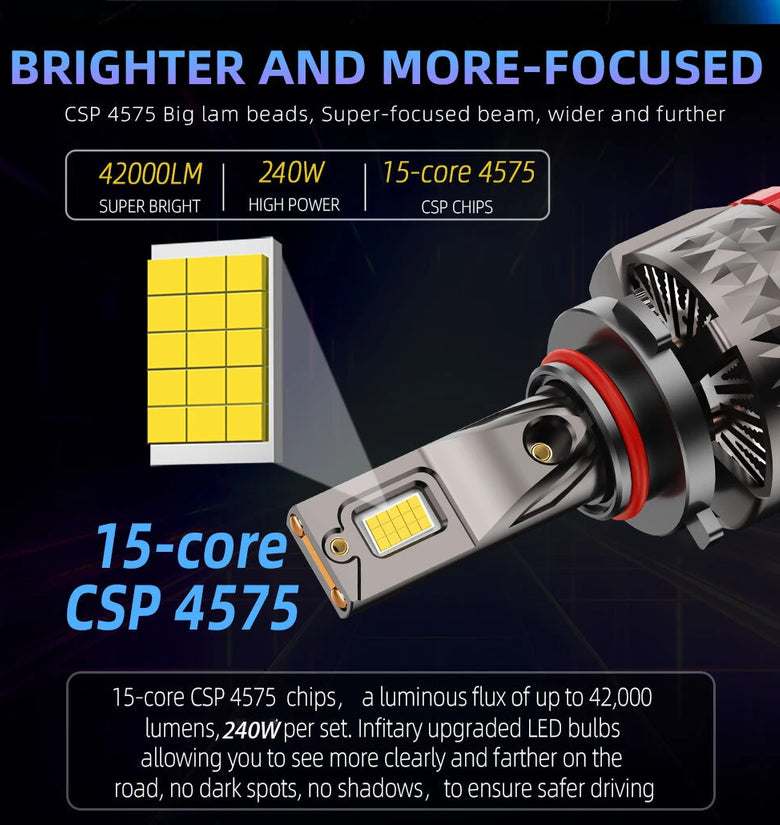 - High Intensity Illumination: Equipped with 15-core CSP 4575 chips, this headlight system produces a remarkable 42,000 lumens. This ensures superior brightness, allowing drivers to see further and clearer for a safer driving experience.