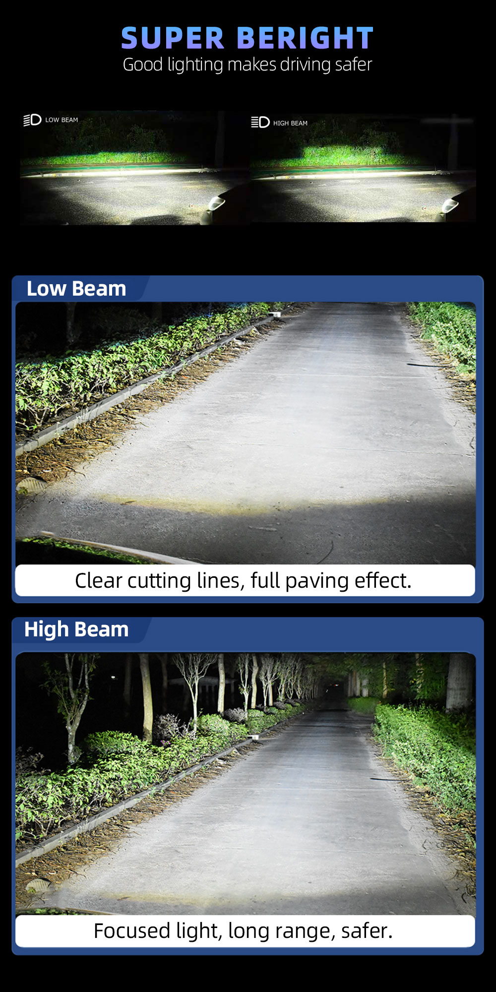 - Perfect Beam Pattern: Designed to project a highly focused beam, the LED bulbs eliminate dark spots and shadows, providing a clear, even, and wide illumination. This results in better road visibility and effective coverage at both low and high beams.