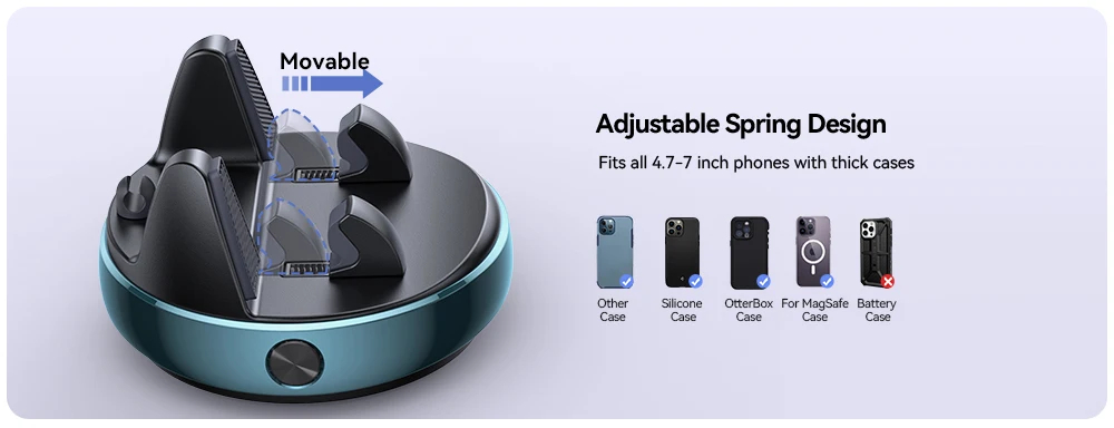 - Spring-Loaded Automatic Locking: Innovatively designed spring-lock mechanism ensures a secure hold for devices ranging from 6–16 mm in thickness, catering to a wide range of phone models.