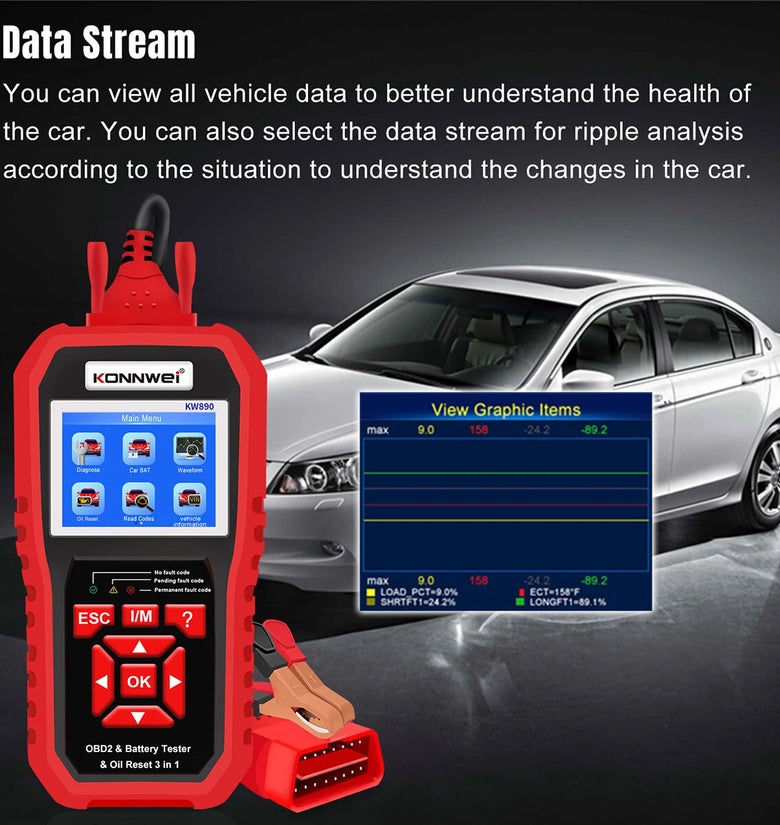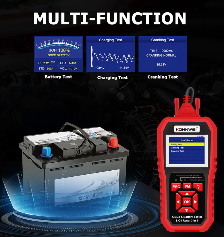 KW890 is also a digital battery tester for 12V lead acid car, SUV, light truck batteries.
