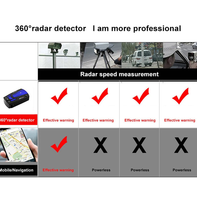 - Accurate Speed Detection: The V7 Radar Detector is equipped with a high-performance radar sensor to provide precise speed monitoring. This ensures accurate detection of varying speed limits, allowing drivers to stay within legal speeds at all times.