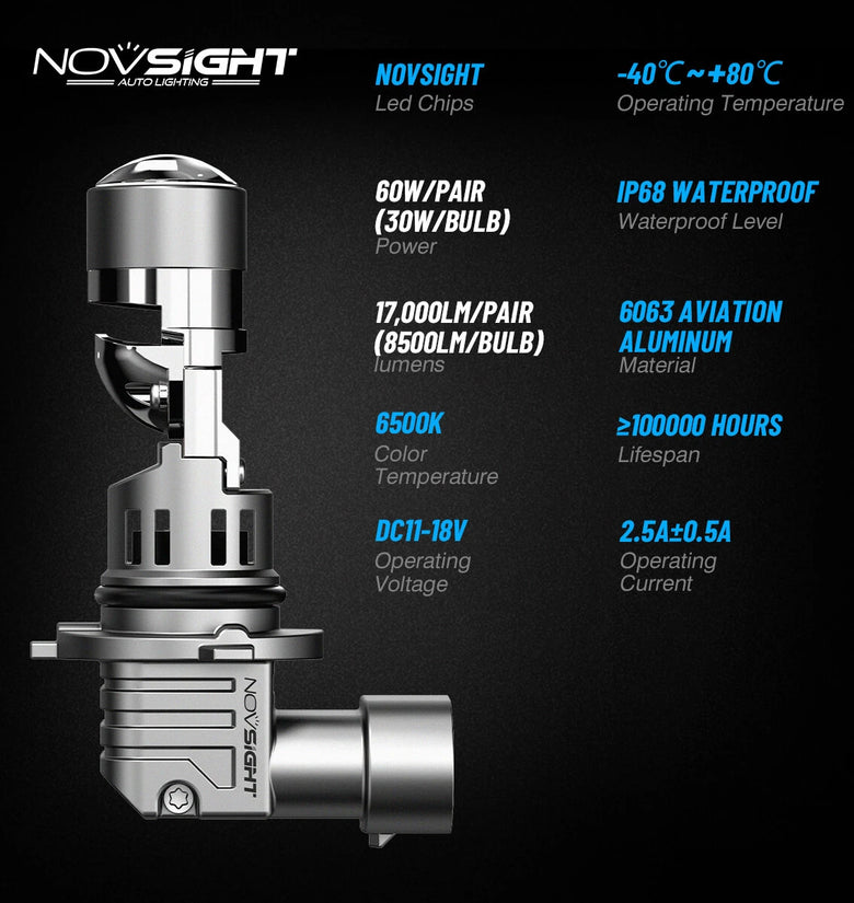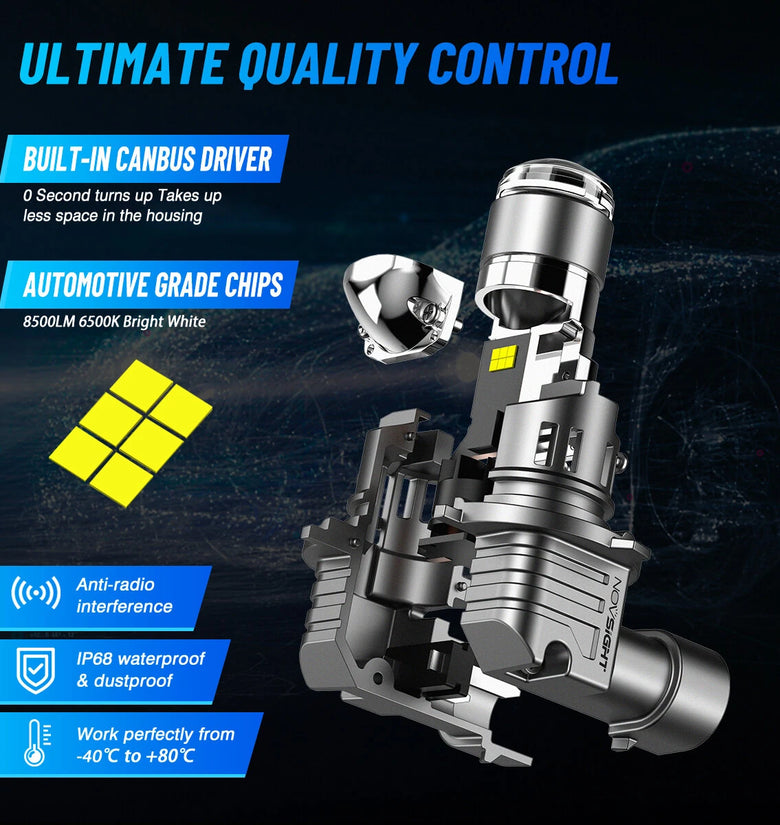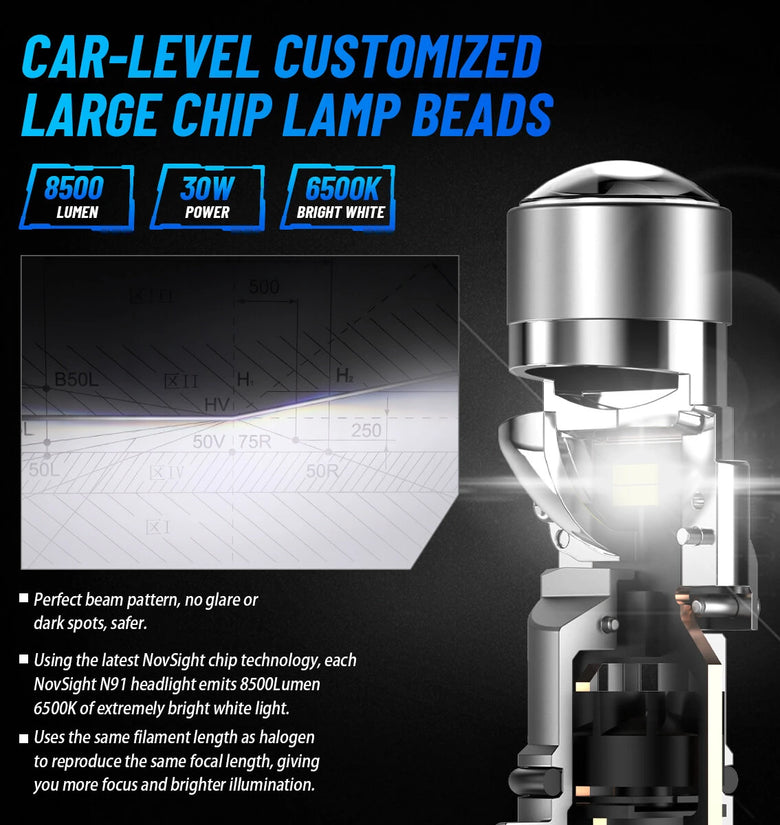 - Unmatched Brightness: Equipped with 8500 lumens per bulb, the NovSight N91 series guarantees superior visibility on the road. The 6500K bright white light drastically enhances clarity and night driving, ensuring a safe journey regardless of the weather conditions.