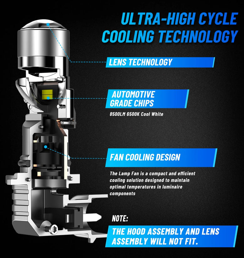 - Efficient Cooling System: Featuring ultra-high cycle cooling technology and a unique fan cooling design, these headlights maintain optimal temperatures, preventing overheating. The 6063 Aviation Aluminum ensures effective heat dissipation for prolonged service life.