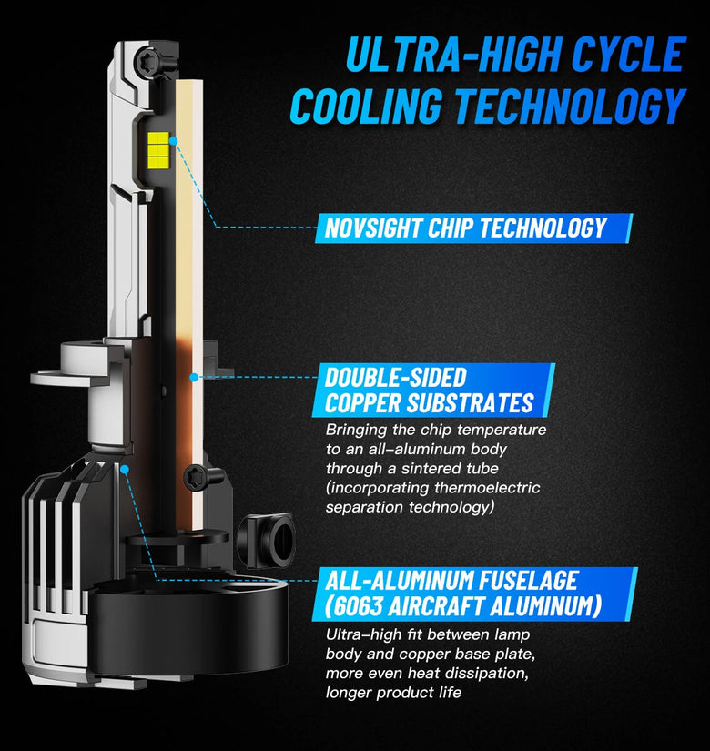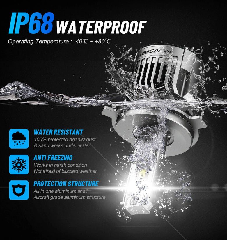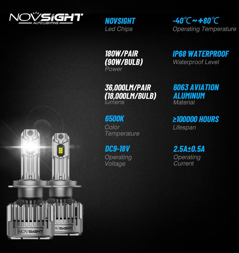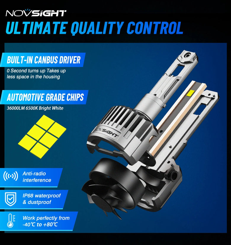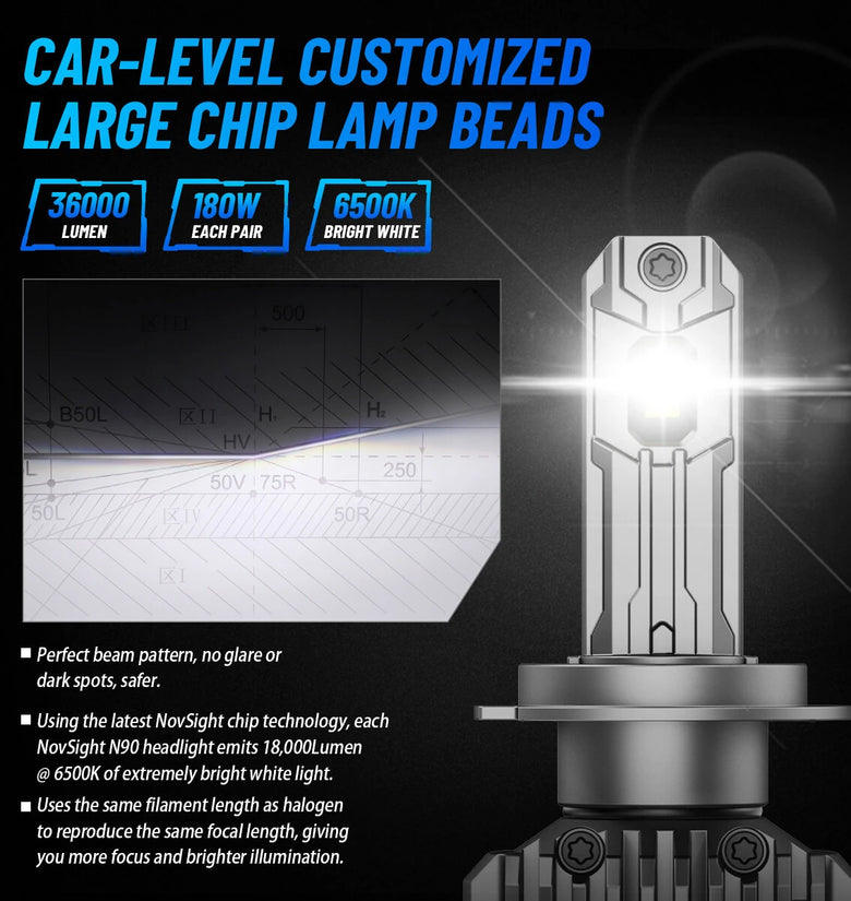 Utilizing high-grade NovSight chip technology, this LED headlight emits 36,000 lumens per pair with ultra-clear 6500K color temperature, significantly improving nighttime visibility.