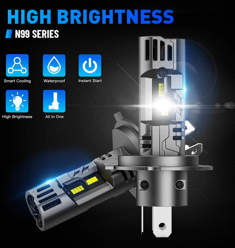 - All-In-One Compact Design: The N99 headlights feature an all-in-one design with 6063 aviation aluminum housing. This robust construction is 25% smaller than competing models, allowing for easy installation. The compact size improves compatibility with most vehicles without compromising on power.