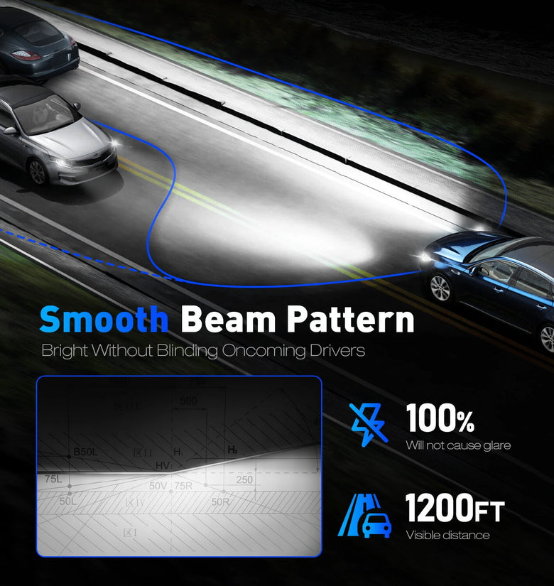 - Smooth Beam Pattern: The N99 headlights are designed to emit a perfectly focused beam pattern, eliminating any glare or dark spots. This ensures oncoming drivers are not blinded, promoting safer nighttime driving. The consistent beam pattern extends visibility up to 1200 feet.